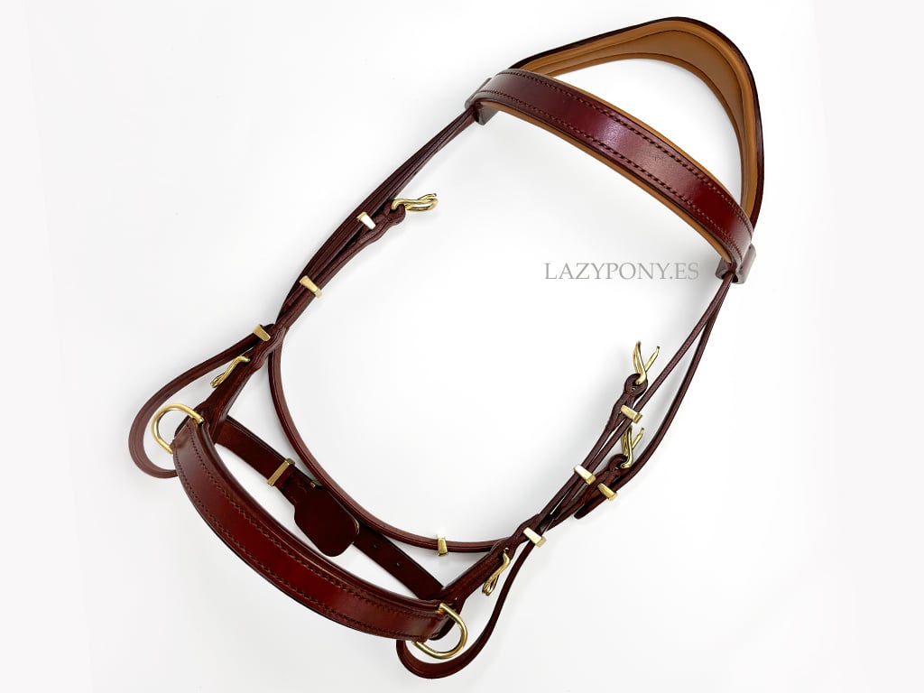 Leather custom bridle WE Lazypony is made of durable solid genuine leather. We use high-quality brass or stainless steel fittings and carefully hand-stitch it using traditional saddlery techniques – it is incredibly strong and durable
