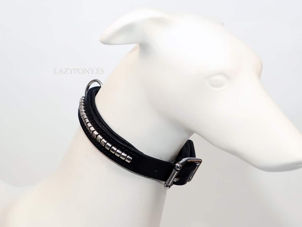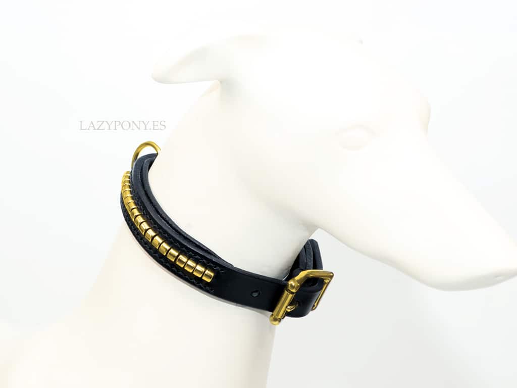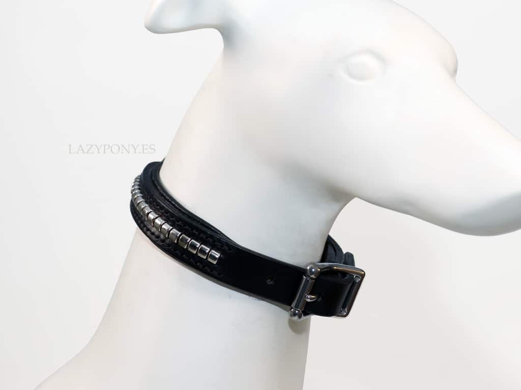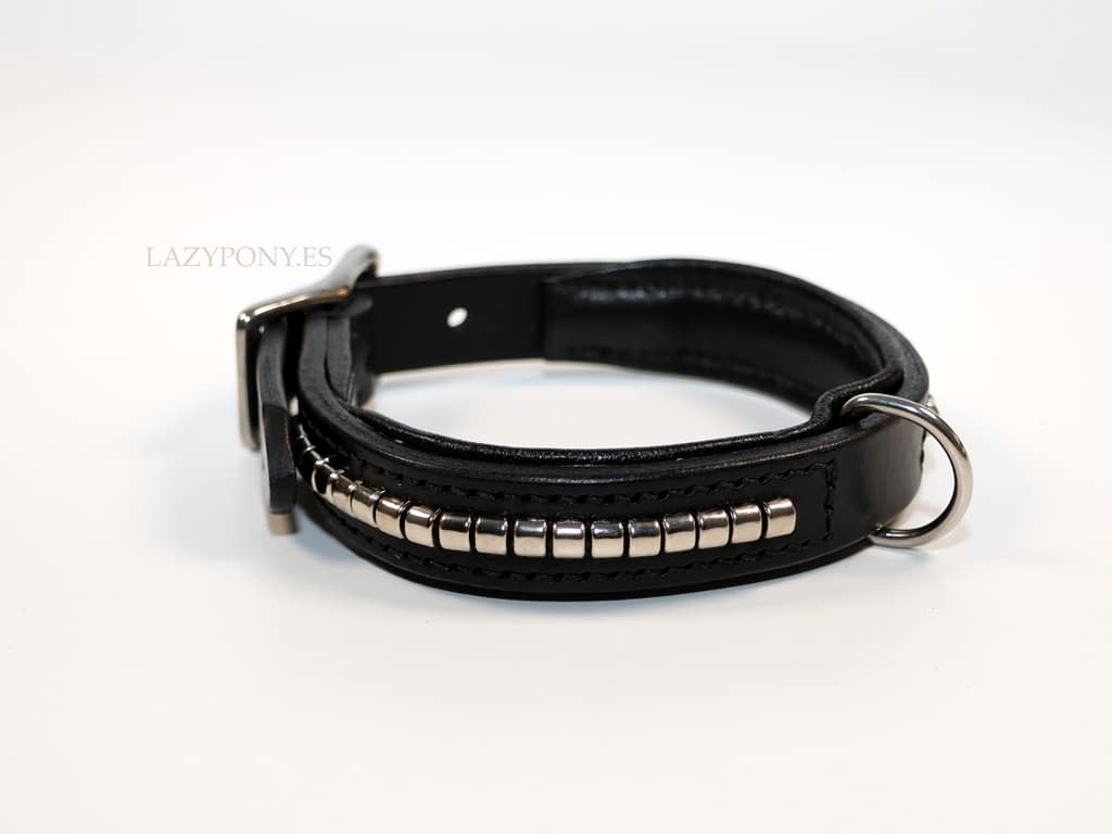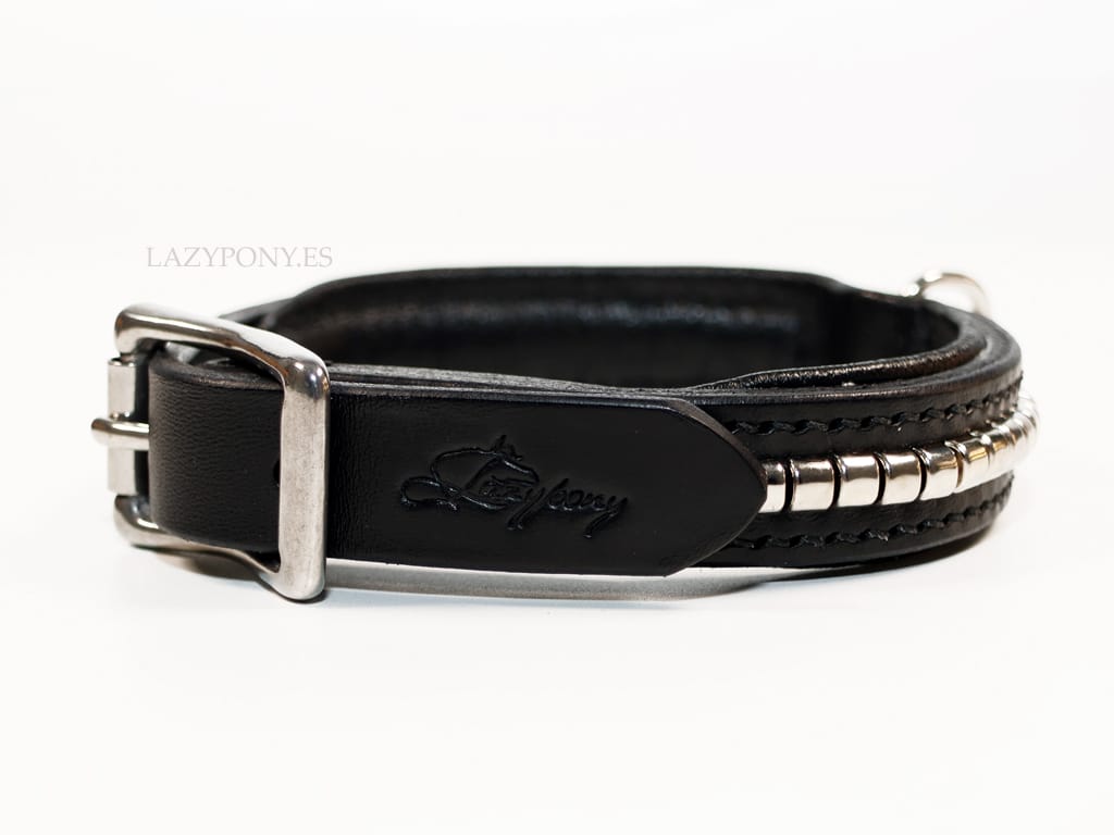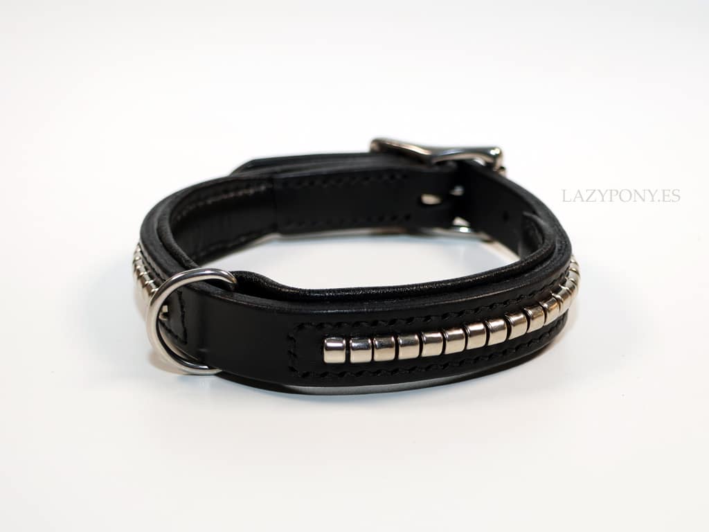 Collar clásico de cuero con clinchers Lazypony. Este collar ajustable hecho a mano está fabricado con cuero natural macizo y suave, y cuenta con acolchado para ofrecer la máxima comodidad a tu perro. Está decorado con clinchers de latón o acero, tradicionalmente utilizados en las frontalera de las bridas de exhibición. El collar personalizado Lazypony, cosido a mano, tiene acolchado suave para la comodidad de tu perro y está equipado con herrajes de latón/acero inoxidable de primera calidad.