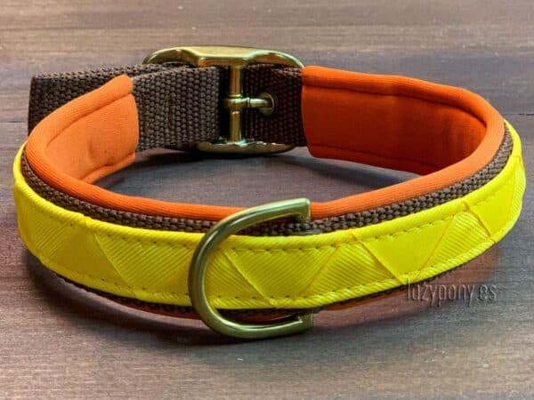 ¡Sé genial como un plátano! Hermoso collar Lazypony para perros hecho a mano con acolchado suave para mayor comodidad y estilo. Está decorado con trenzado de cintas de colores. El hardware elegante y con estilo que utilizamos le servirá durante muchos años. Con el collar artesanal Lazypony puedes estar seguro de la seguridad de tu perro. Hicimos este collar con correas sintéticas resistentes y utilizamos únicamente herrajes de latón de alta calidad. Ni siquiera el perro más grande y fuerte podrá romperlo. ¡Este accesorio exclusivo hecho a mano con un diseño vistoso resaltará la singularidad y la belleza de su amado perro!