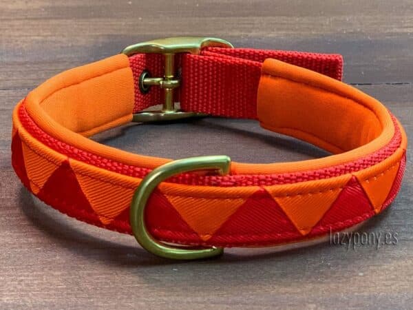 ¡Papaya tropical para un estado de ánimo alegre! Hermoso collar Lazypony para perros hecho a mano con acolchado suave para mayor comodidad y estilo. Está decorado con trenzado de cintas de colores. El hardware elegante y con estilo que utilizamos le servirá durante muchos años. Con el collar artesanal Lazypony puedes estar seguro de la seguridad de tu perro. Hicimos este collar con correas sintéticas resistentes y utilizamos únicamente herrajes de latón de alta calidad. Ni siquiera el perro más grande y fuerte podrá romperlo. ¡Este accesorio exclusivo hecho a mano con un diseño vistoso resaltará la singularidad y la belleza de su amado perro!