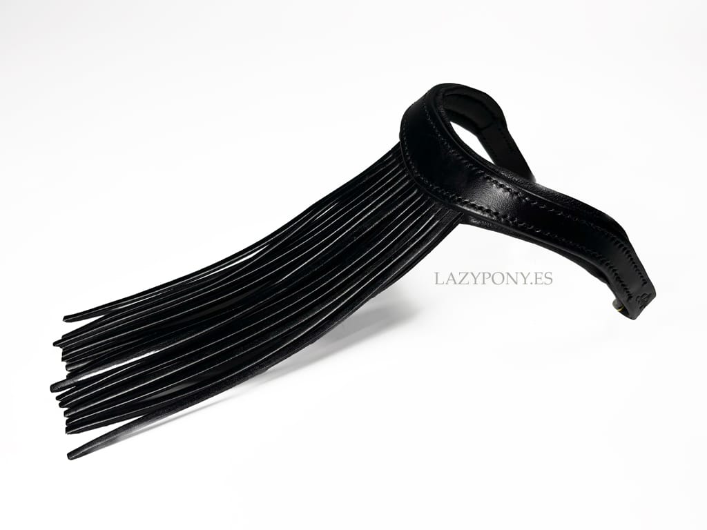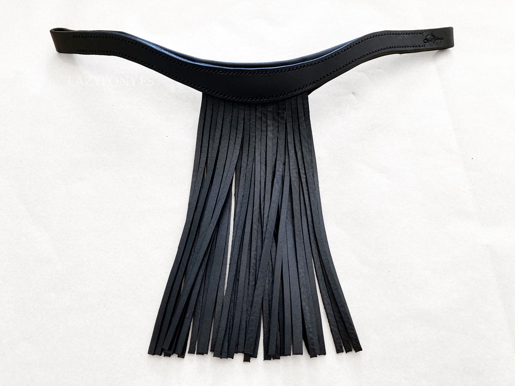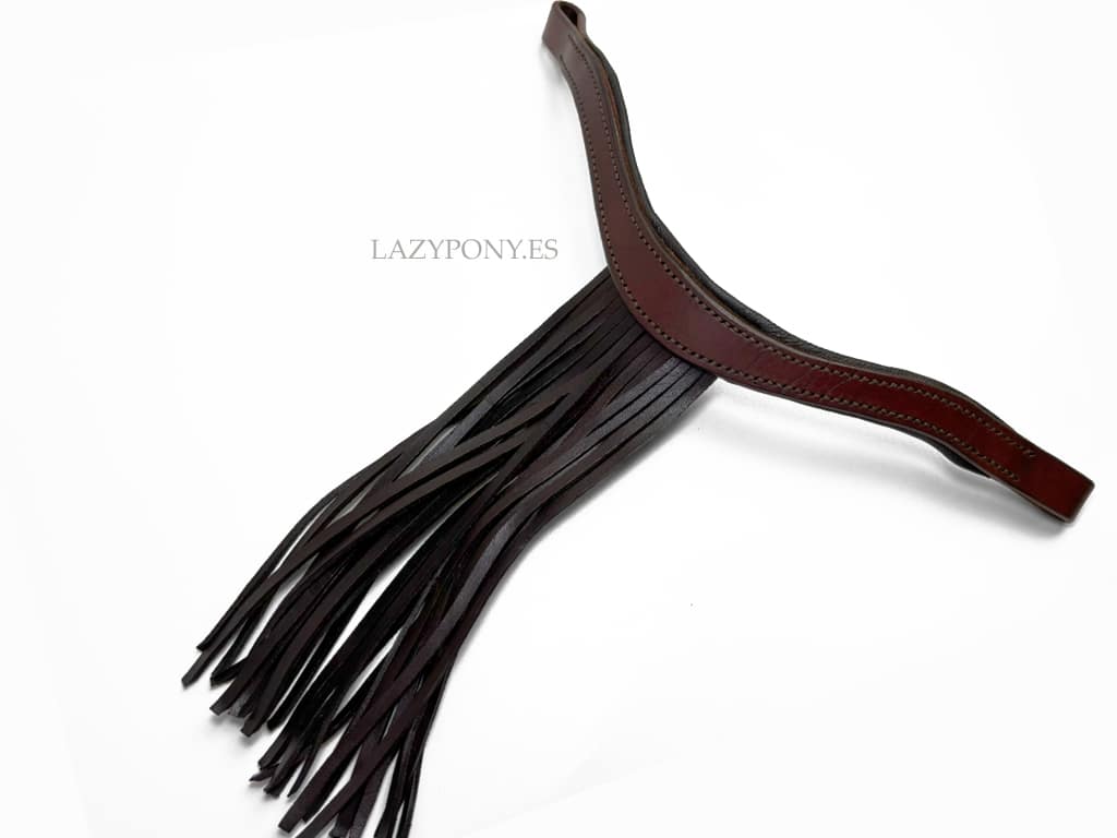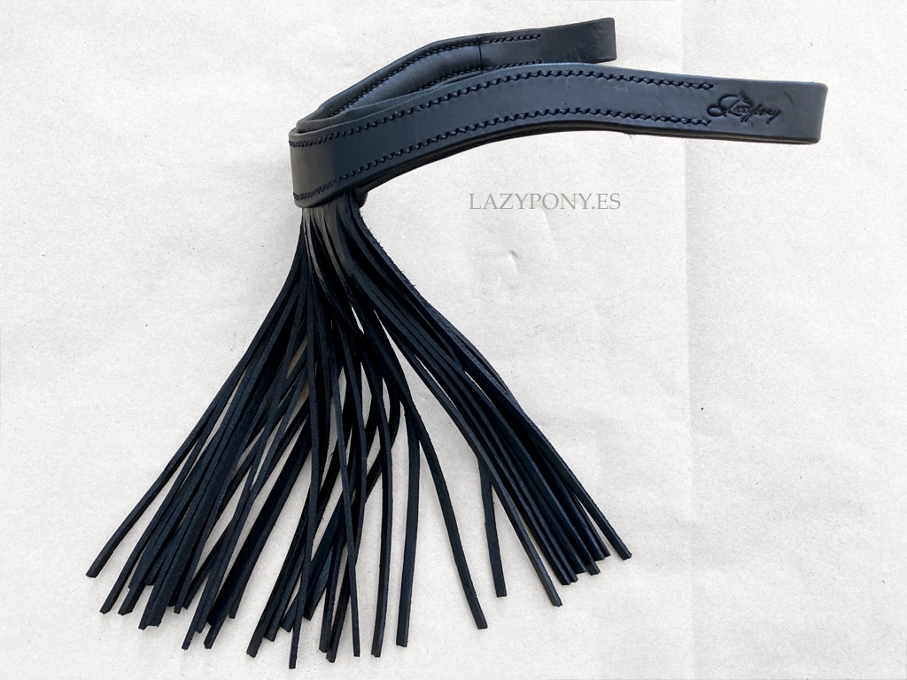 Leather browband Vaquero Lazypony. Handmade mosquero browband with fringe Vaquero made of soft genuine leather and hand-stitched using traditional saddlery techniques. This cozy and comfortable leather browband is also equipped with a soft pad and decorated with a mosquero – a traditional decoration and insect repellent.