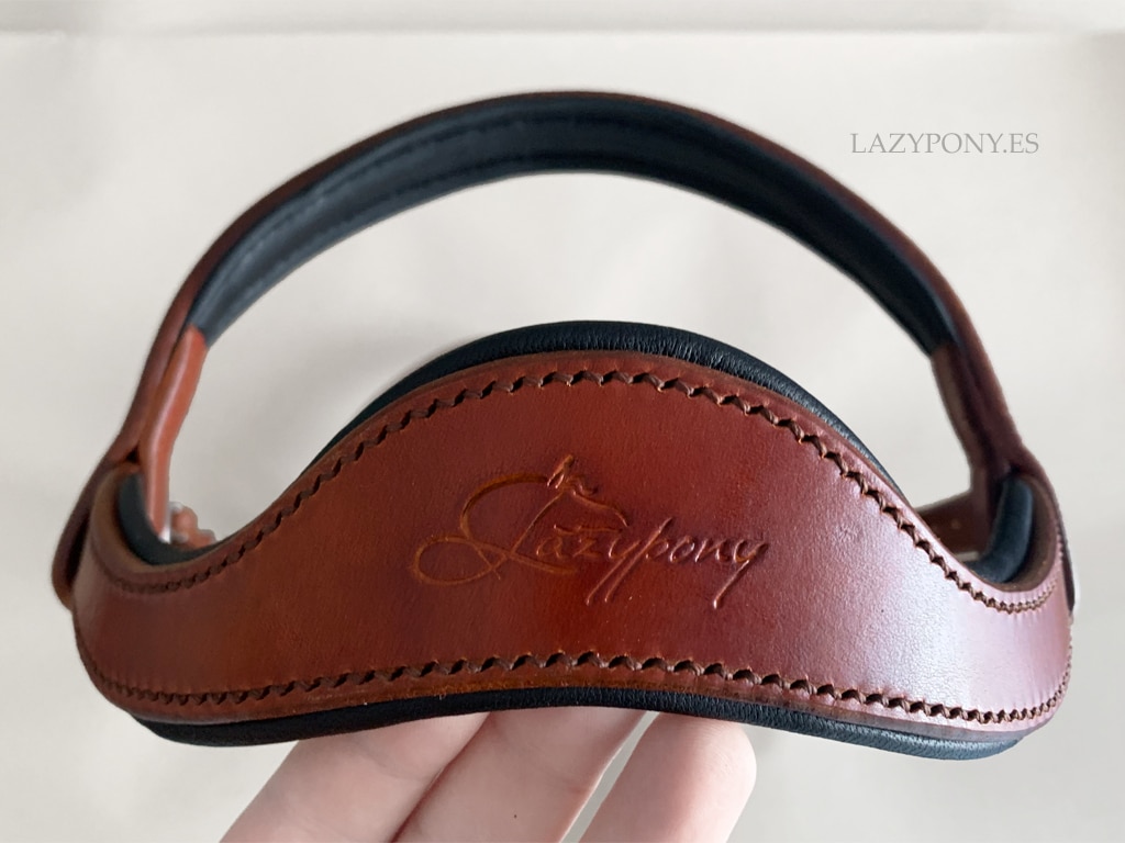 Cabezada de cuero artesanal Ranger Lazypony. Esta cabezada personalizada cuenta con una testera anatómica con acolchado suave para la comodidad de tu caballo. Tiene una frontalera acolchada decorada con puntos en contraste. ¡Esta cabezada tipo hunter es ideal para la monta diaria y para concursos!
