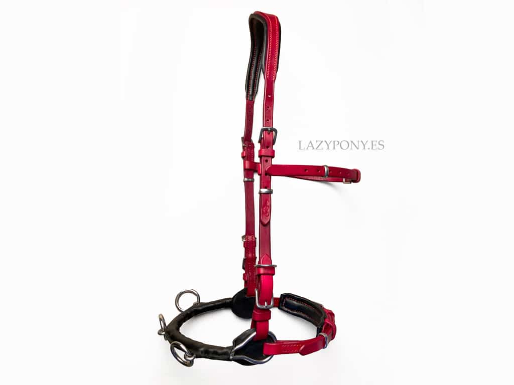 Cavesón de cuero artesanal Lazypony. Elegante cabezada sin bocado hecha a mano con muserola de cadena o de cuero para trabajo pie a tierra, dar cuerda y montar. La cabezada personalizada tiene una testera anatómica acolchada y una barbada para la comodidad de tu caballo. La carrillera incorpora una muserola inferior que puede ajustarse a la altura que prefieras. La muserola de cadena es una cadena forrada en cuero nappa suave. La muserola de cuero es plana, acolchada y con anillas. Esta cabezada sin bocado cuenta con anillas en D para acoplar correas de un bocado.