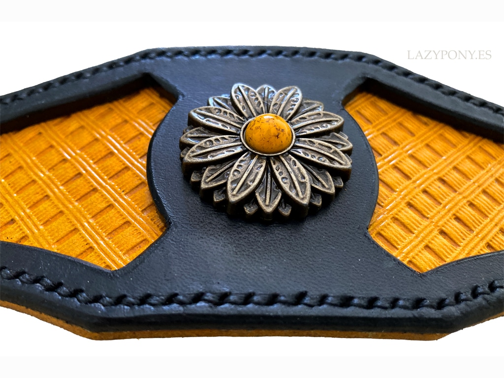 Fancy handmade Leather halter noseband Lazypony. This Bronc Noseband made of two layers of genuine leather with decorative layer in between and elegant conchos. Halter noseband Lazypony carefully hand-stitched using traditional saddlery techniques for durability and beauty. Choose your favourite color scheme! This unique Bronc Noseband is beautiful, durable and long-lasting!