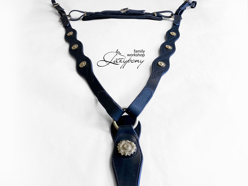 Custom Breastplate Lazypony made of strong, soft and durable solid natural leather – is will last you for many years! We use high-quality courtesy fittings and carefully hand-stitch it using traditional saddlery techniques – it is incredibly strong and durable.
