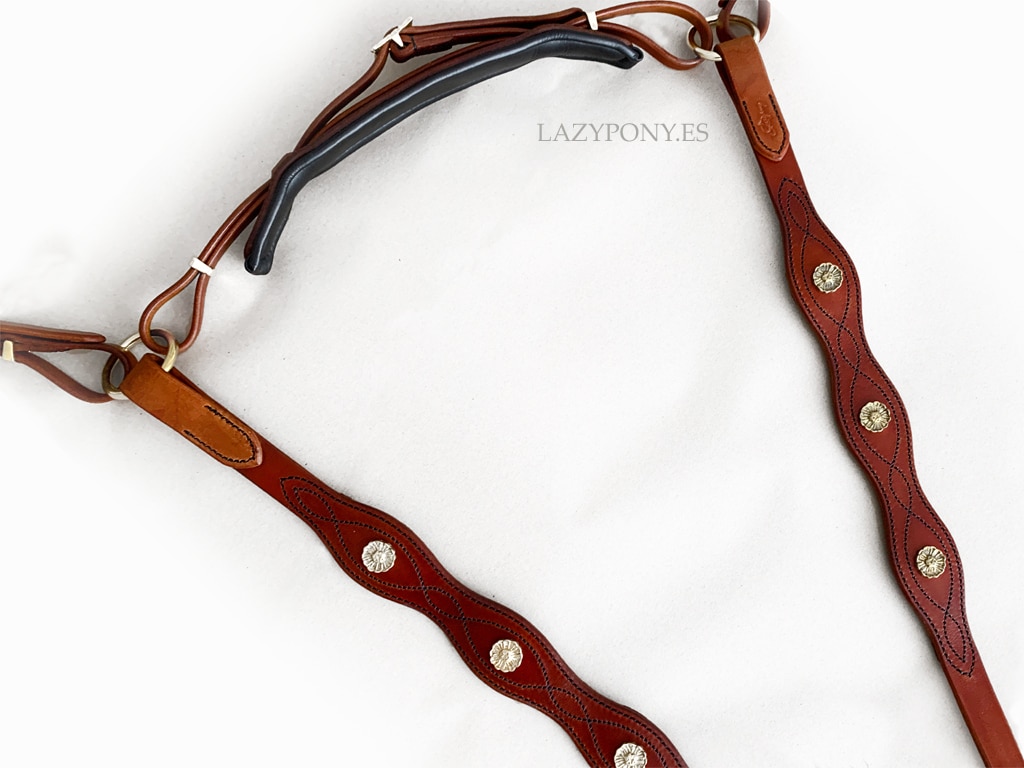 – Cuero teñido a mano. ¡Cada pechopetral Lazypony es única!