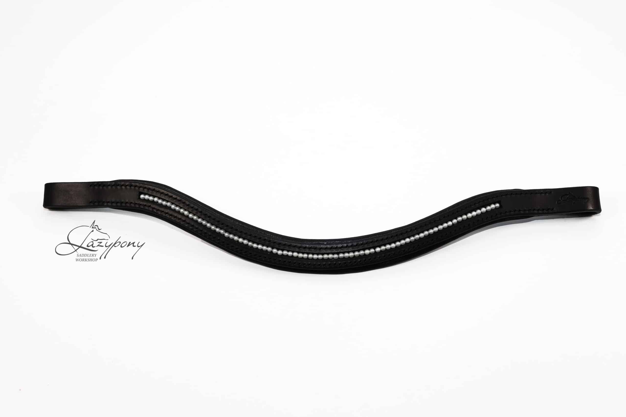 White pearl leather browband Lazypony with soft padding. Wave beaded horse browband Lazypony decorated with natural white sea shell beads – the beads are made from the shells of large mollusks and covered with several layers of mother-of-pearl. Curved leather horse browband Lazypony is 2 cm wide. Custom pearl browband Lazypony made of soft and durable solid natural leather – is will last you for many years! We carefully hand-stitch it using traditional saddlery techniques – it is incredibly strong and durable.