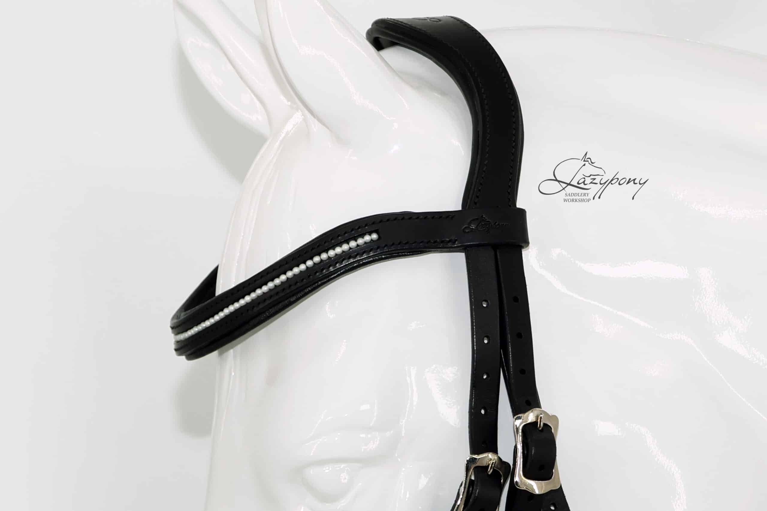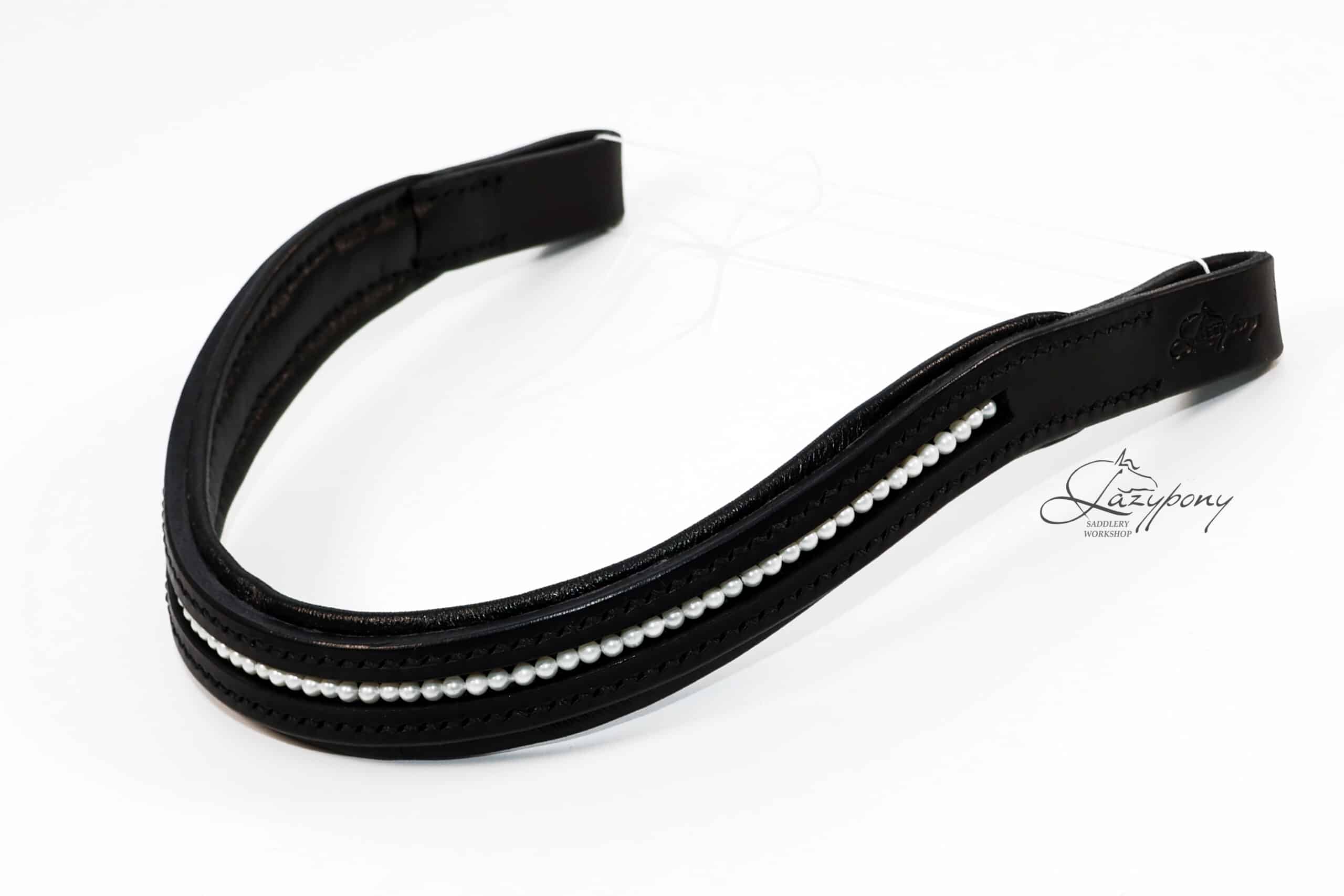 White pearl leather browband Lazypony